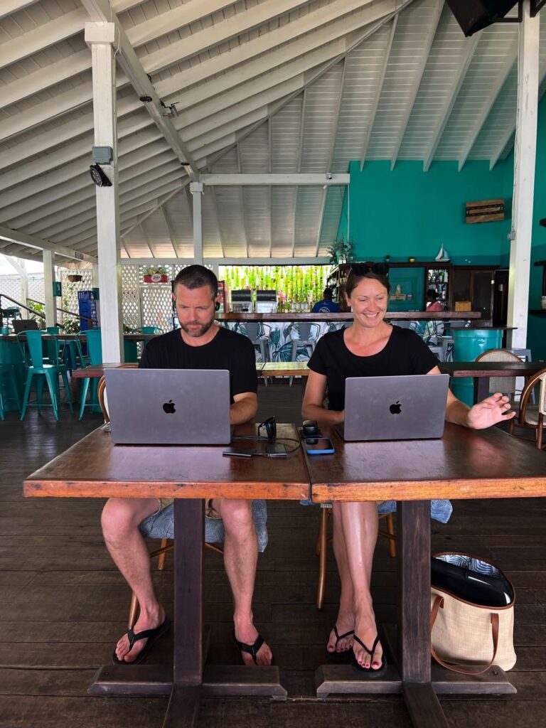 Goats On The Road writer Alex working remotely from a cafe environmentGoats On The Road writer Alex working remotely from a cafe environment