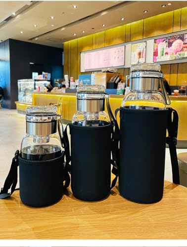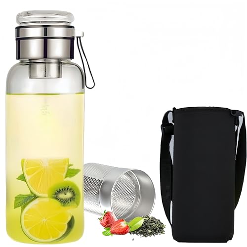 SoliquidSmithy 24OZ Borosilicate Glass Infuser Water Bottle,Glass Tea Tumbler with Strainer and Anti-slip Sleeve, Sport Water Bottles for Gym Hiking Camping