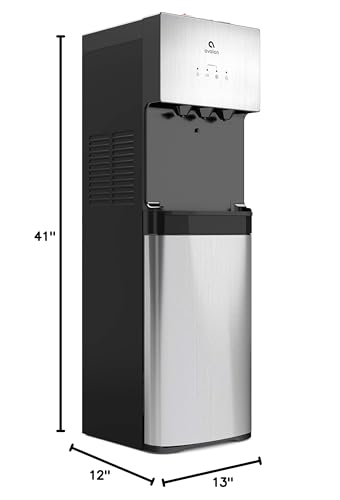 The Avalon 3 Temperature Bottom Loading Water Cooler With Filtration Is Made With An Innovative Stainless Steel Body. It Offers A Choice Of 3 Water Temperatures. The Easy-To-Use Push Button Spouts Make It So Much More Convenient To Use. Simply Press The Temperature Button Of Choice And Allow The Water To Flow From The Given Spout. The Machines Highly Efficient Compressor Makes The Cold Water Crisp And Ice Cold At Approximately 47° F Without The Need Of Adding Ice Cubes To Your Drink. The Hot Faucet Is Hot Enough To Cook One’S Tea Or Coffee Or Any Other Steaming Hot Beverage At Approximately 185° F. Due To The Extremely Hot Water, We’Ve Added A Child Safety Lock On The Hot Water Faucet. We Have Incorporated A Nightlight That Can Be Switched On From The Back Of The Unit. This Will Make Filling Up Your Cup At Night So Much More Simple And Easy. The Dispensing Area Is 12X3X10 Inches With 9 Inches Of Space Below The Spouts. This Will Accommodate Most Large Cups Or Bottles. There Is A Removable Drip Tray At The Bottom Of The Dispensing Area To Catch Any Drips Or Spills. This Water Cooler Is Bottom Loading With A 5 Gallon Refillable Bottle As Well As An Nsf Certified Activated Carbon Filter (Listed As Model Avalon A4Filter) And A Sediment Filter (Listed As Model Avalon A5Filter) In The Cabinet. The Water Is Pumped From The Bottle Through The Sediment And Carbon Block Filters And Into The Machine. There Is An Replace Filter Indicator That Will Alert You When To Replace The Filters And An Empty-Bottle Indicator That Will Will Alert You When The Bottle Needs To Be Refilled. The Water Cooler Is Ul Listed And Complies With All Standards Of Energy Star. The Unit Dimensions Are 41X12X13 Inches.