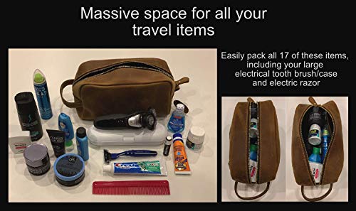 Calissimo Genuine Leather Toiletry Travel Tote Bag – Dopp Kit – Shaving Kit.