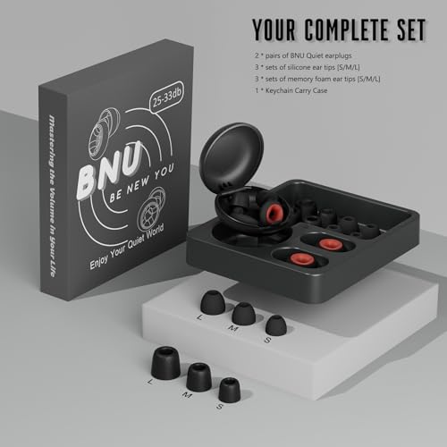 [Comfortable and Reusable] BNU concert earplugs are crafted from ultra-soft foam and 100% skin-friendly silicone material. Available in various ear tip sizes, these silicone ear plugs are ergonomically designed for a flawless fit. The memory foam earplugs return to their original shape after use, ensuring no discomfort or slippage even after extended wear