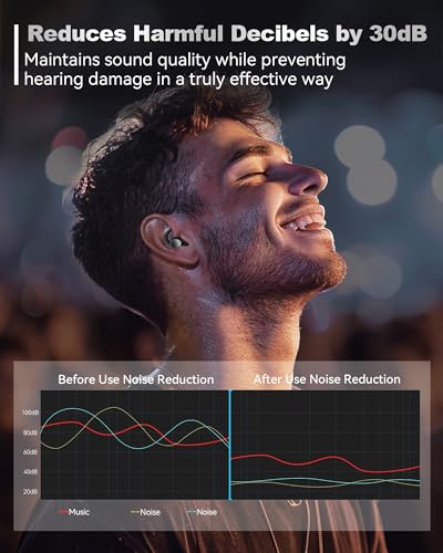 【Hearing Protection】Ear plugs noise cancelling reduce noise up to 30dB, protecting your ears from harmful noise. Noise cancelling earplugs avoid the muffling that foam earplugs can cause, reducing the risk of noise-induced hearing loss and allowing you to receive sound from the outside world at a volume you feel comfortable with.