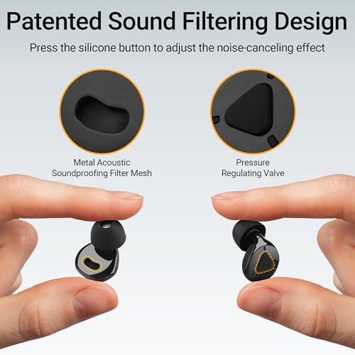 2025 NEW INNOVATIVE DESIGN: Ear plugs have an adjustable noise reduction design. This earplugs is designed to control the air pressure in the ear by pressing a button to achieve better noise reduction. The material is designed with durable plastic and silicone to provide structural support, which is exquisite and durable to ensure long-term comfort and durability