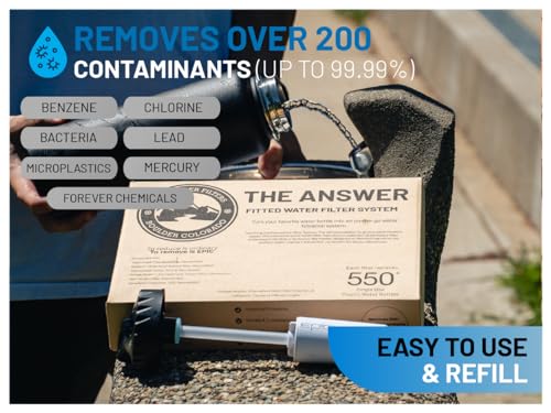 Epic Water Filters The Answer | Water Bottle Filter System Compatible with Hydro Flask/Yeti/Iron Flask/Simple Modern/Hydro Cell | USA Made Filter Removes 99.9% of Tap Water Contaminants
