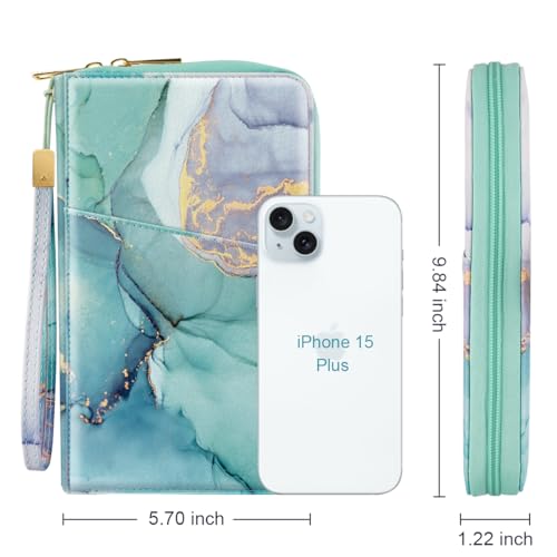 ★【Roomy and Multiple Travel Wallet】: 9.84″H X 5.7″L x 1.2”D. The family travel passport organizer has plenty of room for your travel essentials like passport, boarding pass, ticket, invoice , pen, smart phone(less than 6.5″), checkbook, cash, coins, keys and shipping documents.Completely meet your holiday and traveling demands.