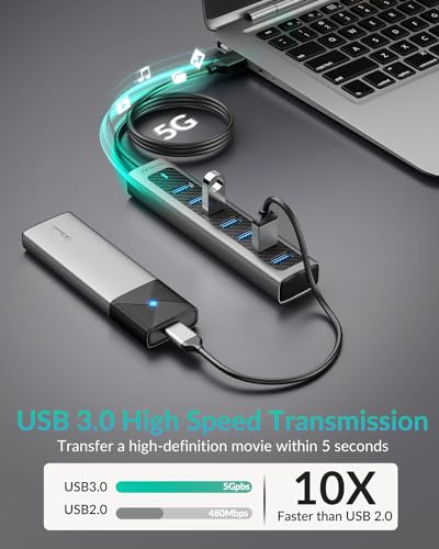 High-Speed USB 3.0 Fast Data Transfer: DATA ONLY, NOT for CHARGING. Experience blazing-fast data transfer speeds with USB 3.0 technology, ensuring quick file transfers and efficient syncing. Thanks to this hub’s 5Gbps high-speed data transfer capabilities, perfect for managing large files and multimedia content