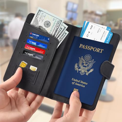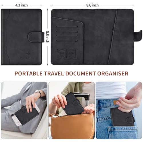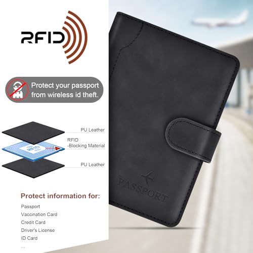 1. Magnetic Buckle Passport Holder: Our passport holder is designed with a hidden magnetic buckle for quick access to our passports and documents, bringing convenience to our travels, passport holder women men family is made of PU leather, soft and comfortable, waterproof and easy to clean