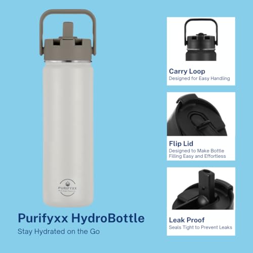 Featuring a convenient carry loop, the Purifyxx HydroBottle is easy to grab and go. Clip it to your backpack, carry it in your hand, or hook it onto your gym bag for effortless transport.