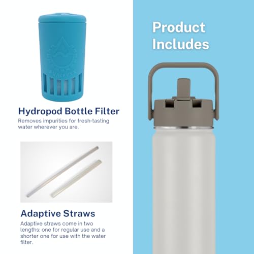 The Purifyxx HydroBottle comes with two straws: a full-length straw for regular, everyday use, and a shorter straw designed specifically for use with the Hydropod water bottle filter. Switch between them with ease depending on your needs.