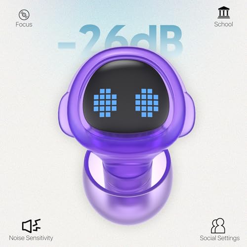 Kids Ear Plugs (6-12 yrs) – Ultra-Comfy Reusable Noise-Reducing Samll Earplugs for Focus, Travel, Concerts, Socializing, Sports Events, Noise Sensitivity – 8 Ear Tips in XS/S/M/L -26dB Ear Protection