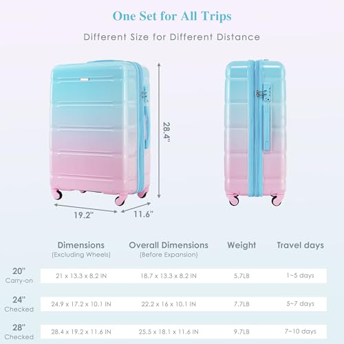 Expandable 3-Piece Set for All Your Needs: This 3-piece luggage set includes a 20-inch carry-on with a convenient USB port (power bank not included), and expandable 24-inch and 28-inch suitcases that offer 25% more capacity, perfect for those who pack heavy for extended trips.