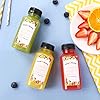 【High-quality clear plastic bottles】Package contains 16 empty plastic bottles, 16 tamper-proof black caps, a rubber funnel, a sponge brush and 16 labels (1.6*3.1inches). These plastic bottles can help you store juices, milk, smoothies, and milkshakes. These juice bottles are easy to clean and reusable. The included brush can help you clean the juice bottles well.