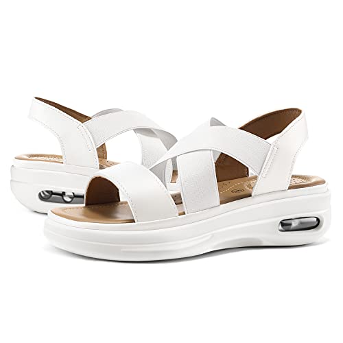 mysoft Women’s Comfortable Walking Sandals Air Cushion Sport Slingback Elastic Band Platform Shoes