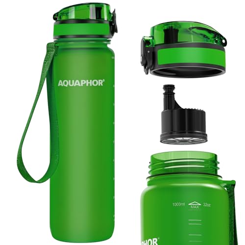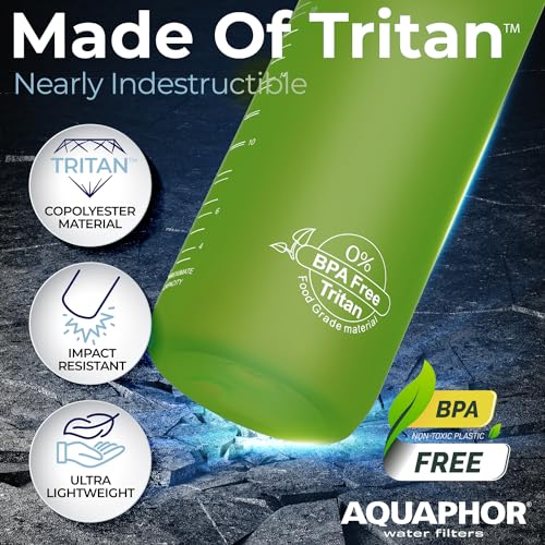 Nakii Filtered Water Bottle, Leakproof, BPA-Free, Motivational Markings, Travel, Everyday Use. 40-Gallon Filter, Replaces 300 Plastic Water Bottles. Includes 1 Filter, 22 FL Oz, Green by Aquaphor