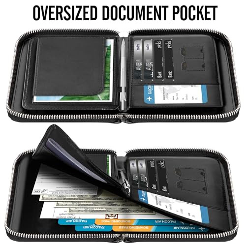 【Elegant and Stylish】: Designed with a focus on both quality and style, elevate your travel experience with its fashionable design, secure zipper closure, and quality craftsmanship. The zipper closure adds a touch of security and functionality to the passport wallet.