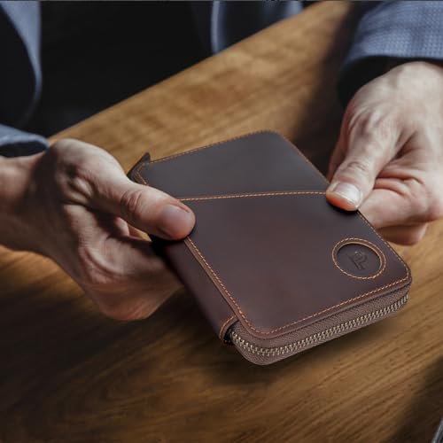 High Quality Leather Craftsmanship: Handmade from luxury full grain leather with YKK zippers, has a smooth, soft and luxurious feeling in your hand. Around with reinforced stitching, it will not tear or become loose, making it both handsome and reliable for long-term use