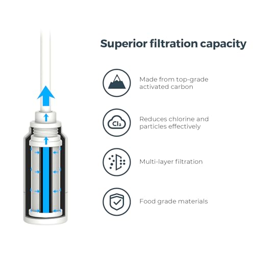 𝑨𝒅𝒗𝒂𝒏𝒄𝒆𝒅 π‘­π’Šπ’π’•π’“π’‚π’•π’Šπ’π’ π‘»π’†π’„π’‰π’π’π’π’π’ˆπ’š: The PureSip Filter is made of top-trade activated carbon, reduces chlorine and particulates. Meet NSF/ANSI 42, 53 & 401 standards. The filter helps you reduce your carbon footprint by replacing up to 450 single-use plastic bottles (11 oz).