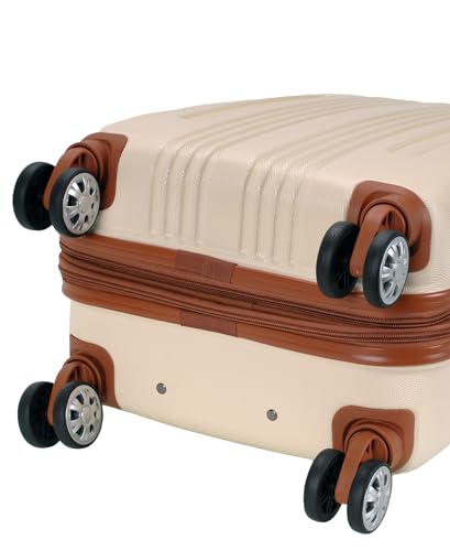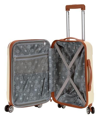 This carryon is made of ABS. The major benefits of this material – it is extremely lightweight, it is durable, and protects the contents of your luggage. Four multi directional spinner wheels rotate 360 degrees for easy maneuverability. This luggage allows you to pack more while avoiding the excess weight surcharges imposed by most airlines. • Multi-directional spinner wheels for easy maneuverability • Modern internal chrome telescoping handle with push button handle. • Interior mesh and zip pocket and elastic pocket * 5 year warranty * 20″X13″x9″ (22″ height with wheels) weighs 6.5 lbs