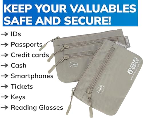 Protects Valuables & Identity:Travel Pouch built in RFID blocking can effectively protect your bank card, ID card, passport and other important items against theft. Zipper closure can effectively protect your personal items from being lost during airports.