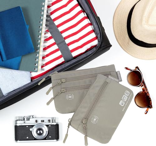 Two-pieces set: The LARGER passport bag has three zipper compartments that can be used to hold passports, driver’s licenses, and more. The smaller currency pouchs has two zipper compartments that can be used to store currency, credit cards, and more.The combination of two pieces passport pouch makes it easy for you to organize your items reasonably and safe.