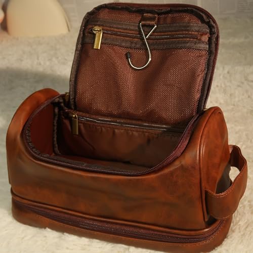 Large capacity design: 11.2*4.8*6.6 inch. Large-capacity double-layer storage design, very suitable for travel. The double-zipper large opening makes it convenient to take. There is a handle on the side and a hook inside. It is convenient to carry and is your best travel companion.