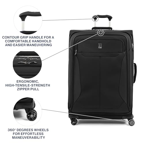 360° SPINNER WHEELS + PATENTED CONTOUR GRIP HANDLE: The 4 spinner wheels rotate 360° degrees for easy and smooth rolling. The adjustable PowerScope handle, with Travelpro’s patented Contour Grip, can be set to two heights: 38 in and 42.5 in. The Contour Grip handle has rubberized touch points at the top, bottom, and side for a more comfortable carrying. With three easy-grip handles, this luggage is designed for effortless lifting and maneuvering.