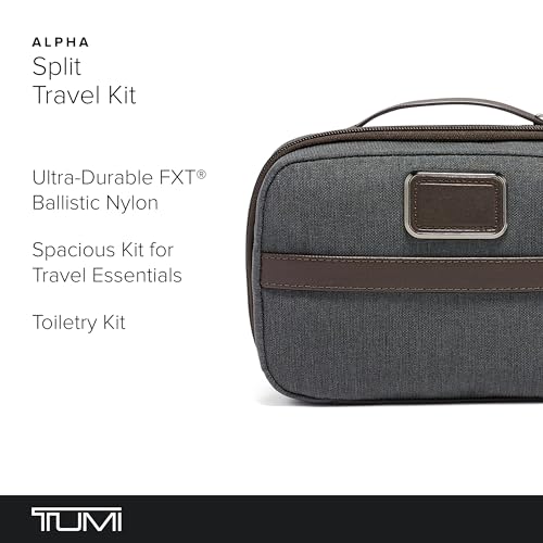 TUMI Alpha Split Travel Kit – Compact Toiletry Bag for Men & Women – Features Removable Leather Handle & 3 Zip Pockets