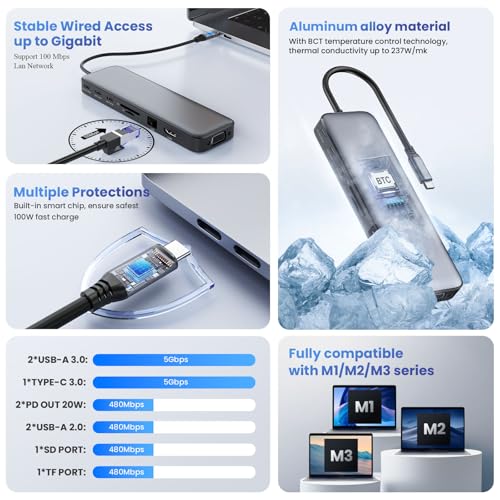 【Wide Compatibility】Crafted with a high-quality aluminum housing for enhanced durability and heat dissipation, this USB-C expansion is for MacBook Pro, MacBook Air, Acer, PS5, XPS, Thunderbolt 3/4 devices, Laptops, Switch, Steam, and Works on Windows, ChromeOS, Linux, Mac OS X 10.5 or higher. Lightweight and sleek in design, great for home, work, travel, business trip.