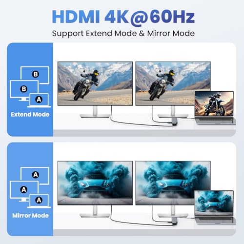 【Super Speed Data Transfer Ports USB C Hub】: This docking station dual monitors for hp laptop comes with 2 USB 3.0 ports and 2 PD 20W out ports,the transfer speed of them are up to 5Gbps, allows you tranfer files in seconds from your usb flash driver, usb/usb c hard disks. In addition, you can connect the keyboard or mouse without any lag via 2 USB 2.0 ports.