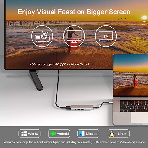 6-in-1 USB C Docking Station – This usb c hub inlude 1 x HDMI, 1 x usb2.0, 1 x usb3.0, 1 x type c, 1 x SD&Micro SD slot.quick and easy access to photos and other media by SD/TF card reader,Ideal for mobile office or photography enthusiasts