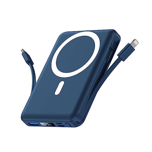 【Portable Charger with Built in Cables】: The portable phone charger has two built-in cables and one USB output port to power up to 5 devices at the same time, Supports 7.5W, 10W and 15W Max wireless charging, 22.5W Max USB PD and 20W USB-C output