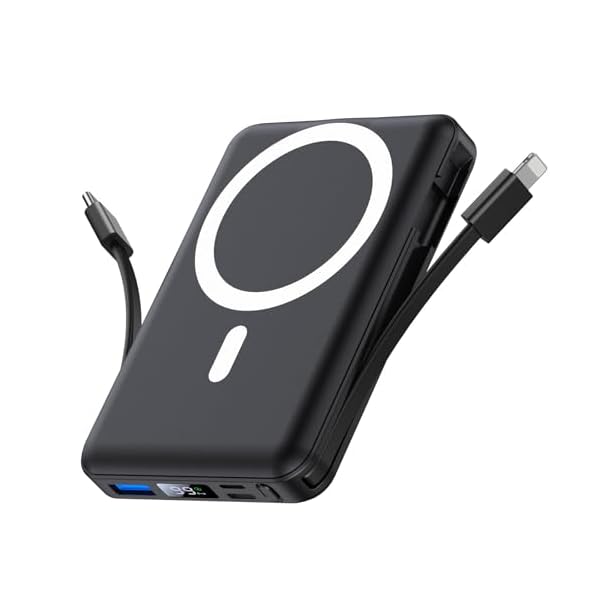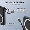 【Portable Charger with Built in Cables】: The portable phone charger has two built-in cables and one USB output port to power up to 5 devices at the same time, Supports 7.5W, 10W and 15W Max wireless charging, 22.5W Max USB PD and 20W USB-C output